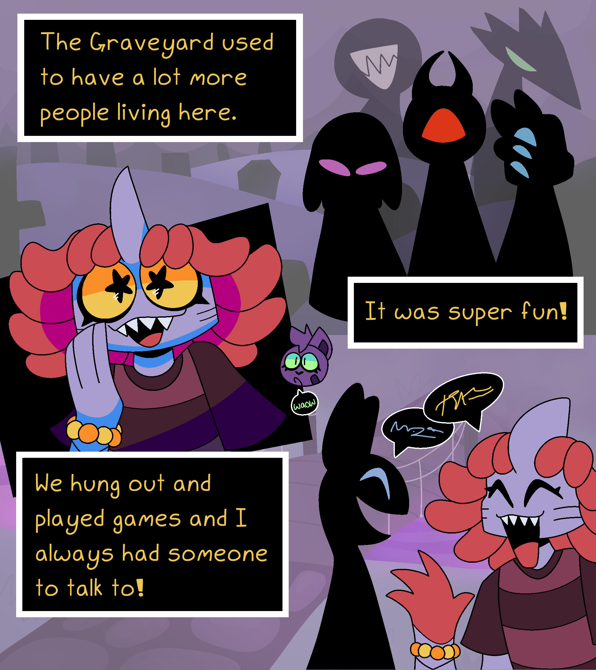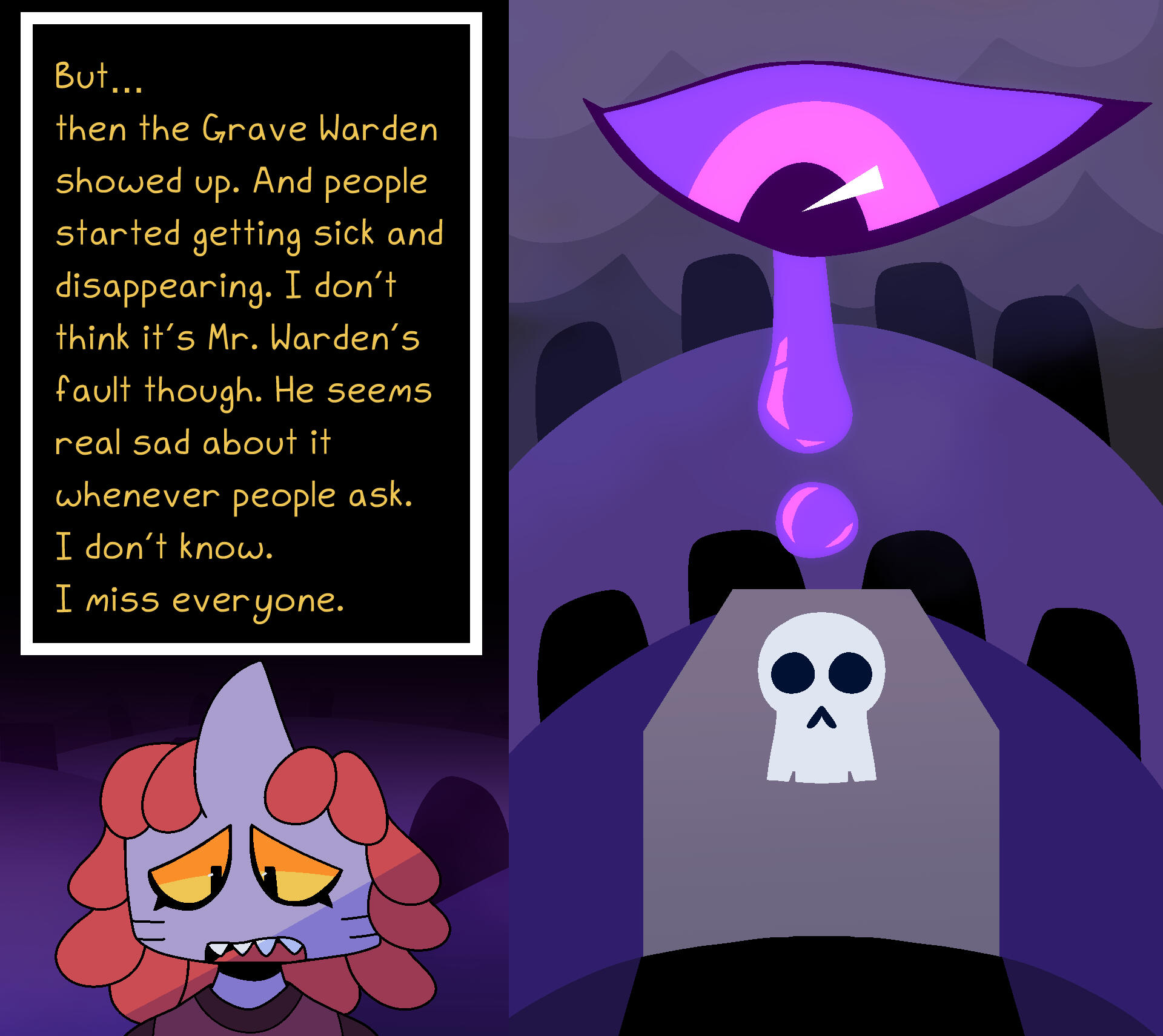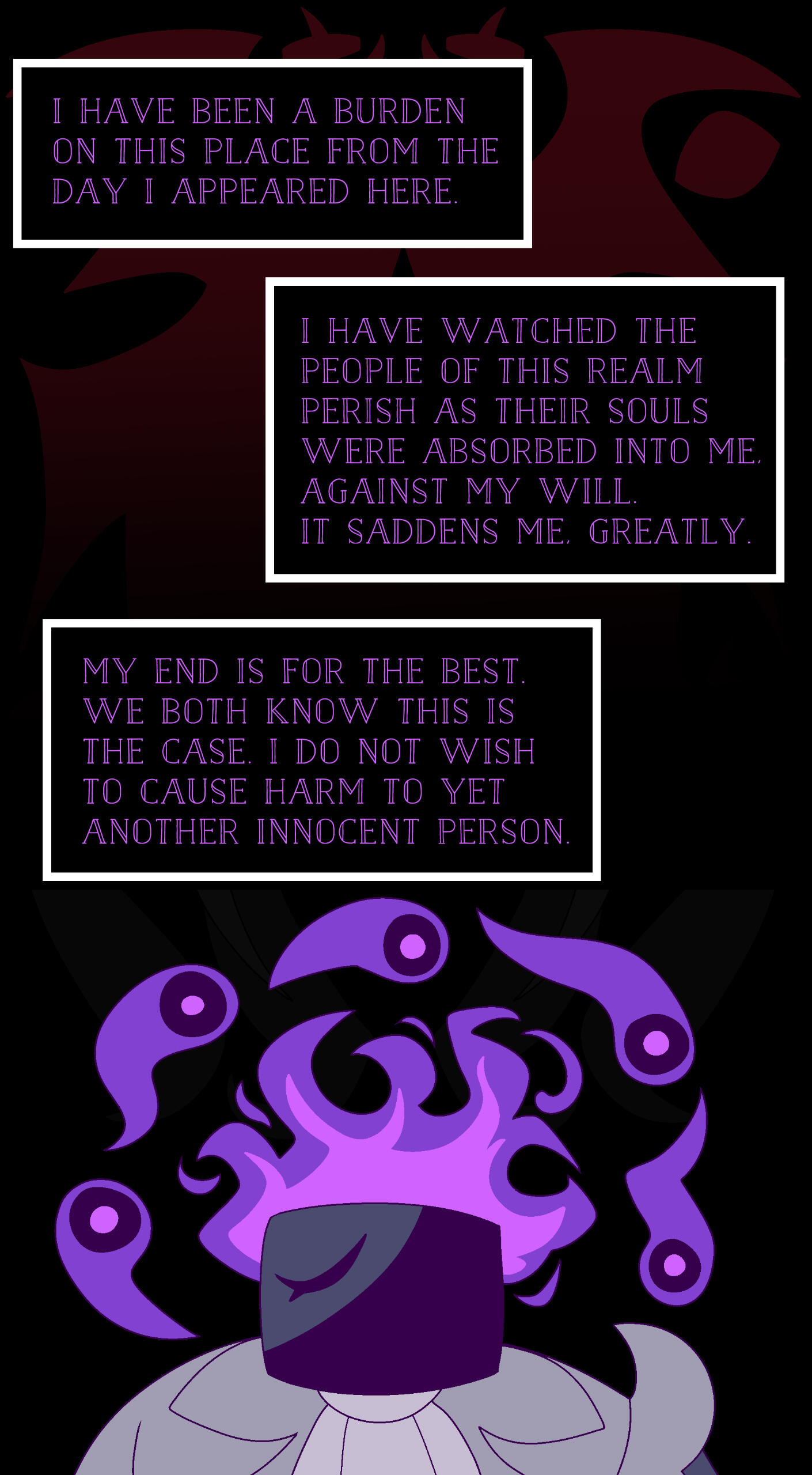 Aetherdrop is a faux-VN-style comic that follows Milo, a 14-year-old cat kid as they traverse the Aether Domain on a quest to defeat the evil Bosses who rule over it.
